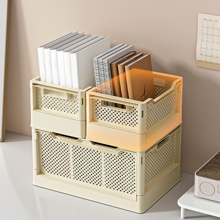 キャスター付き多機能プラスチック収納バスケット 折りたたみ式デスク整理ボックス