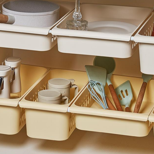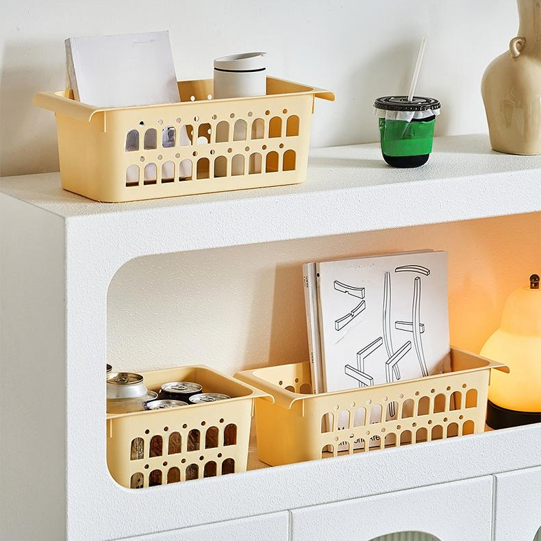 南洋風デザイン多サイズ伸縮ロッド付きメッシュ収納バスケット