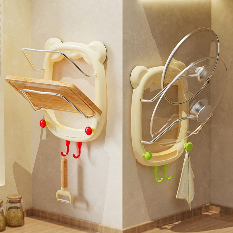強力吸盤付き多機能鍋蓋ラック